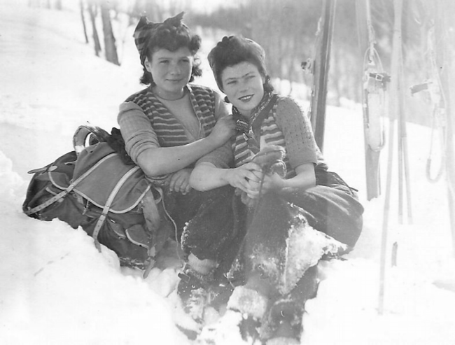Lou et Mad au ski, vallée des Belleville, 1941. (Photo Pierre Demoury)