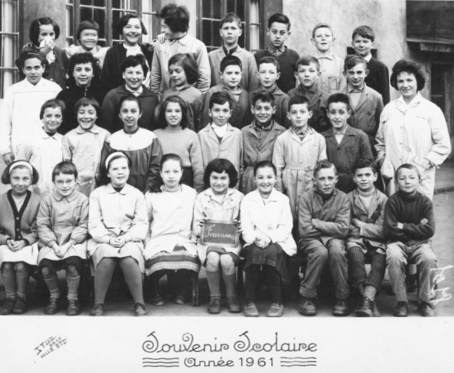 Lou avec ses élèves de Fourneaux, 1961. (Photo Studio Belle Etoile)
